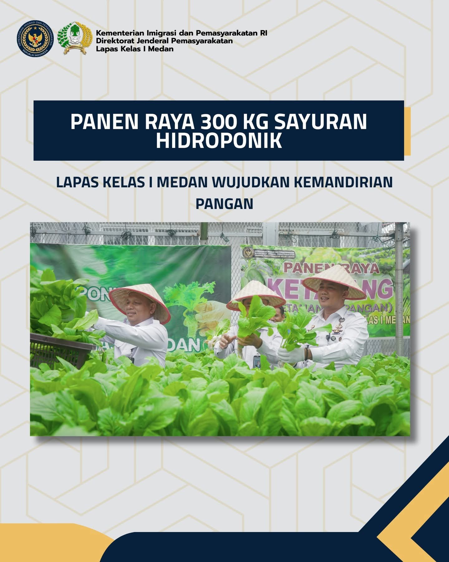 Garudaposnews.id, Medan – Lembaga Pemasyarakatan (Lapas) Kelas I Medan menggelar panen raya unit percontohan hidroponik dengan hasil produksi mencapai 300…