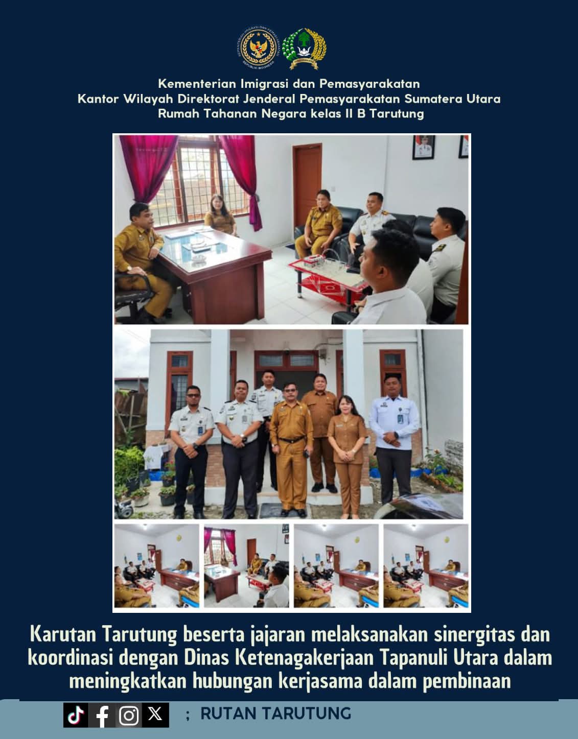 Garudaposnews.id, Tarutung — Kepala Rumah Tahanan Negara (Karutan) Kelas IIB Tarutung beserta jajaran melaksanakan kegiatan sinergitas dan koordinasi dengan Dinas…