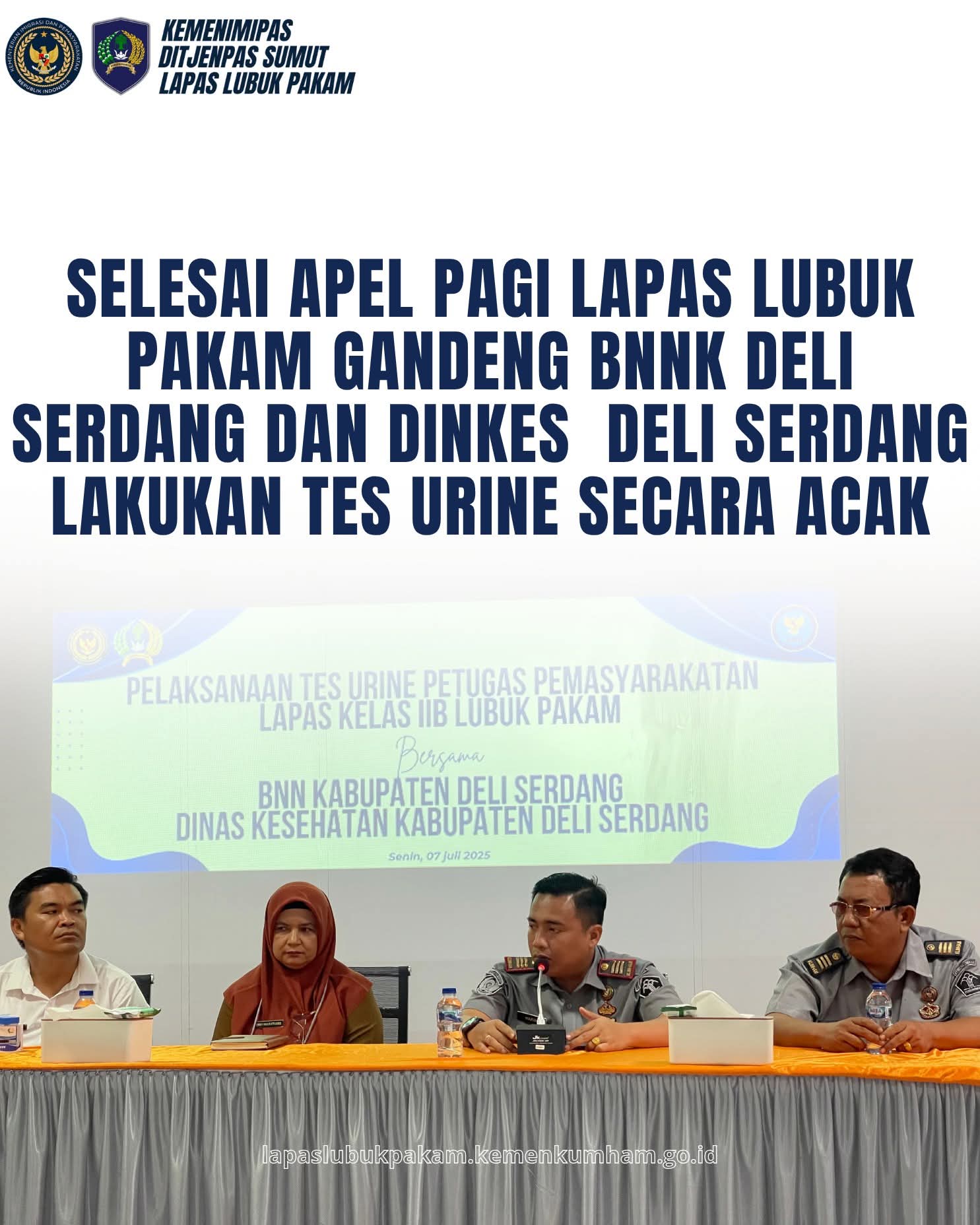 Garudaposnews.id, Lubuk Pakam – Lembaga Pemasyarakatan Kelas IIB Lubuk Pakam Kementerian Imigrasi dan Pemasyarakatan Ditjenpas Sumatera Utara Laksanakan Tes Urin…