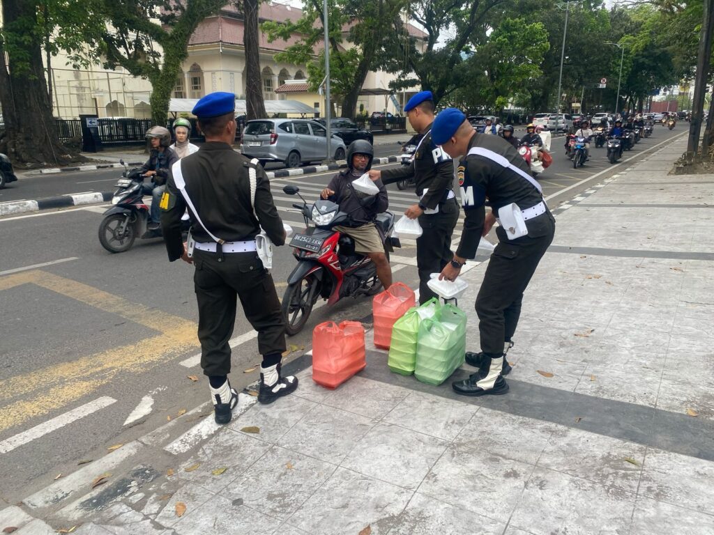 Seusai menggelar briefing, personel Denpom 1/5 Medan dibantu beberapa kader dari FKPPI mulai membagikan puluhan paket takjil untuk berbuka puasa bagi warga dan pengendara yang melintas.