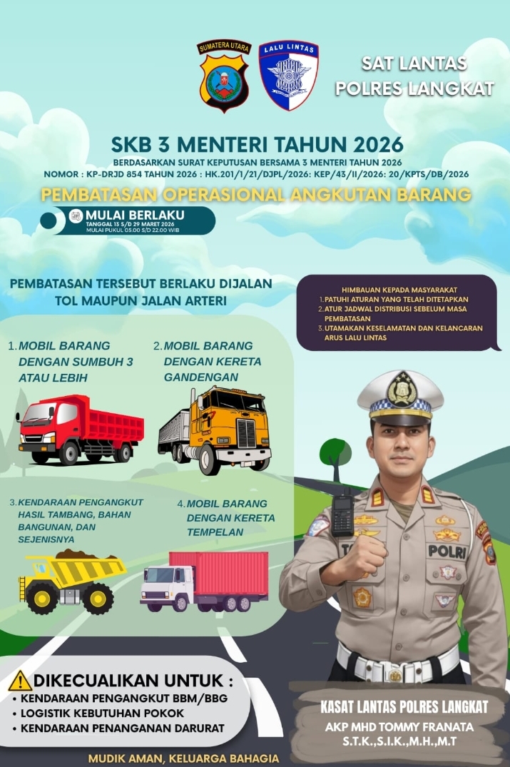 Garudaposnews.id, LANGKAT – Guna memastikan kelancaran arus lalu lintas selama masa mudik lebaran, Satuan Lalu Lintas (Sat Lantas) Polres Langkat…