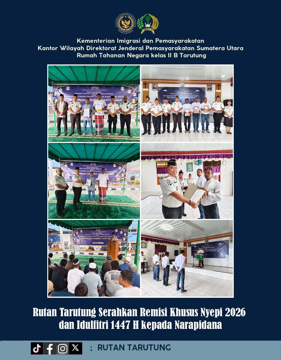 Garudaposnews.id, Balige – Rumah Tahanan Negara (Rutan) Kelas IIB Balige memberikan Remisi Khusus (RK) Hari Raya Idul Fitri 1447 Hijriah…
