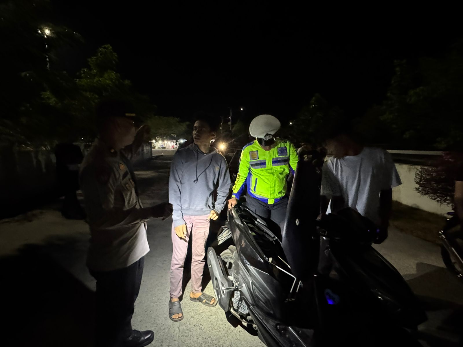 “Kami mengamankan satu unit Honda Beat warna putih dan satu unit Honda Vario warna hitam. Keduanya ditindak karena tidak menggunakan plat nomor polisi serta menggunakan knalpot brong yang suaranya meresahkan warga,” jelas petugas di lapangan.