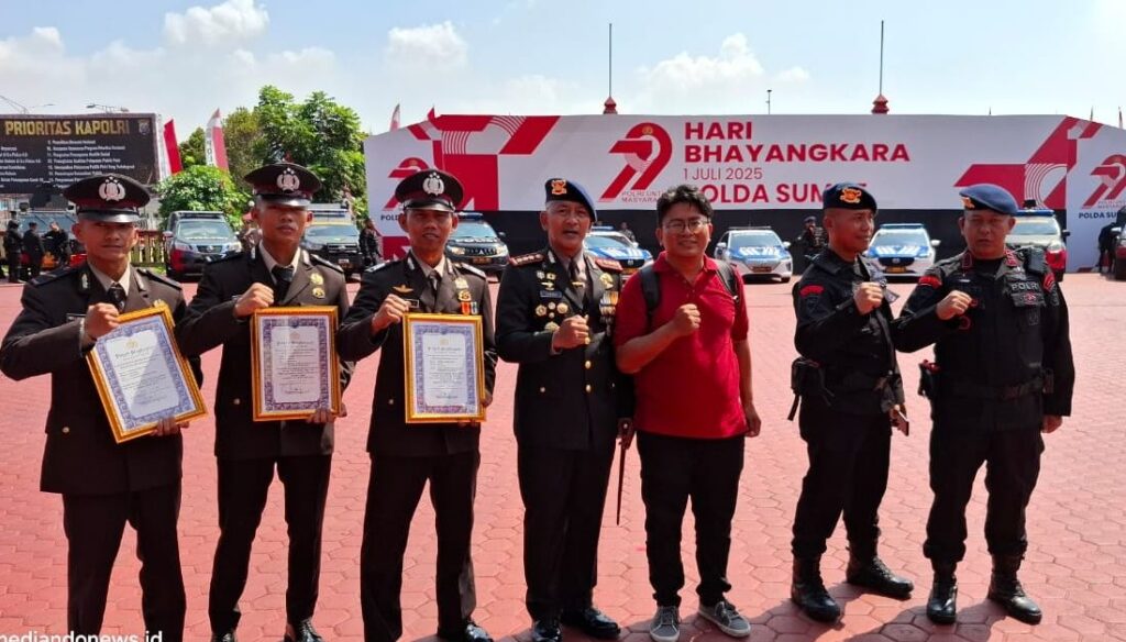 Upacara peringatan Hari Bhayangkara ke-79 berlangsung khidmat dan penuh hikmat,diawali dengan penghormatan kepada Bendera Merah Putih dan dilanjut dengan pembacaan amanat oleh Kapolda Sumatera Utara.