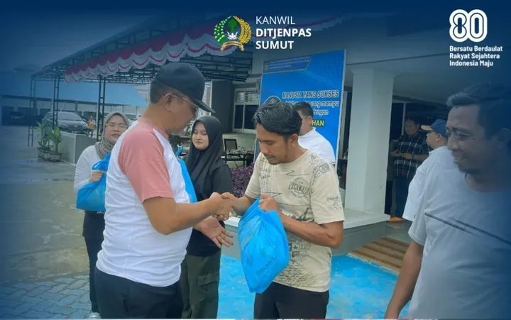 Garudaposnews.id, Medan, 15 Agustus 2025 – Menyambut Hari Ulang Tahun (HUT) Kemerdekaan Republik Indonesia ke-80, Kantor Wilayah Direktorat Jenderal Pemasyarakatan (Kanwil Ditjenpas) Sumatera Utara menunjukkan kepeduliannya kepada masyarakat sekitar dengan membagikan r paket sembako. Kegiatan berlangsung di halaman kantor wilayah pada Jumat (15/8), dihadiri oleh pegawai Kanwil Ditjenpas Sumut, masyarakat setempat.