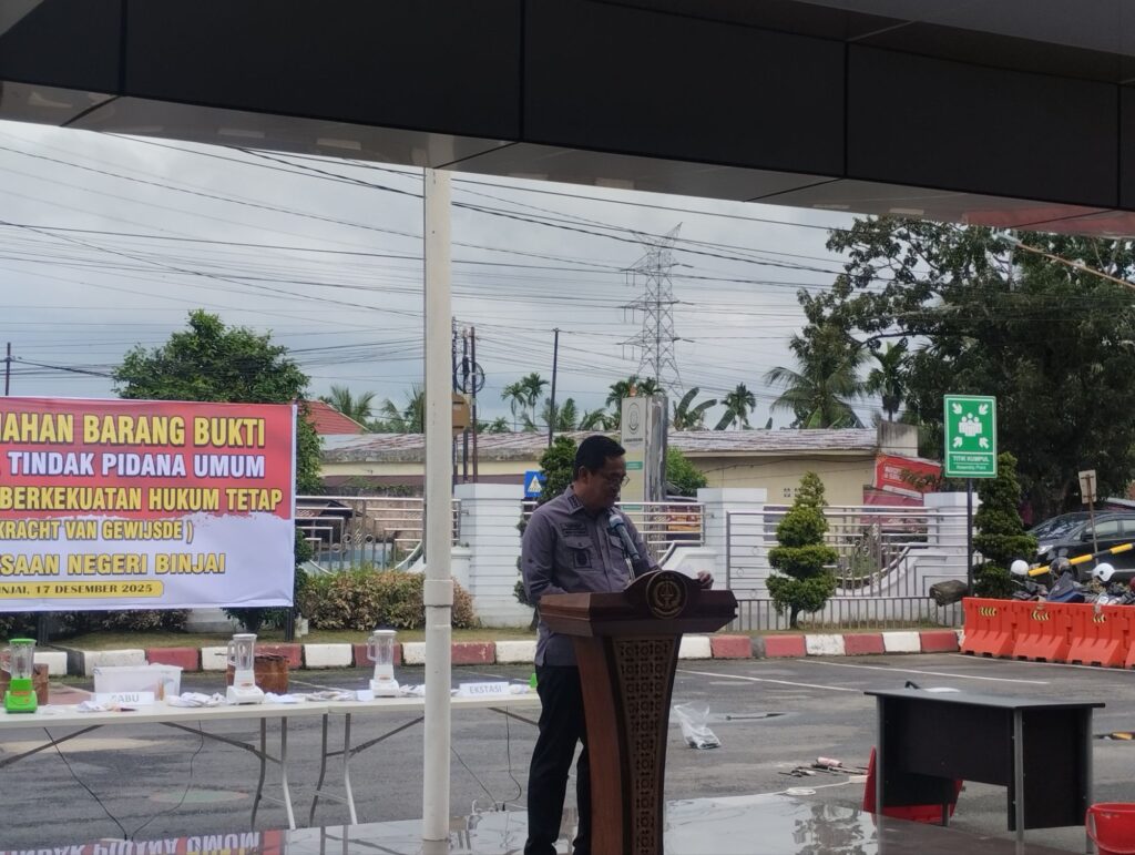 Garudaposnews.id, BINJAI – Kejaksaan Negeri (Kejari) Binjai melaksanakan pemusnahan barang bukti (Barbuk) tindak pidana yang telah memperoleh kekuatan hukum tetap (Inkracht) dari berbagai perkara. Kegiatan pemusnahan ini diselenggarakan pada Rabu, 17 Desember 2025, bertempat di Kantor Kejaksaan Negeri Binjai.