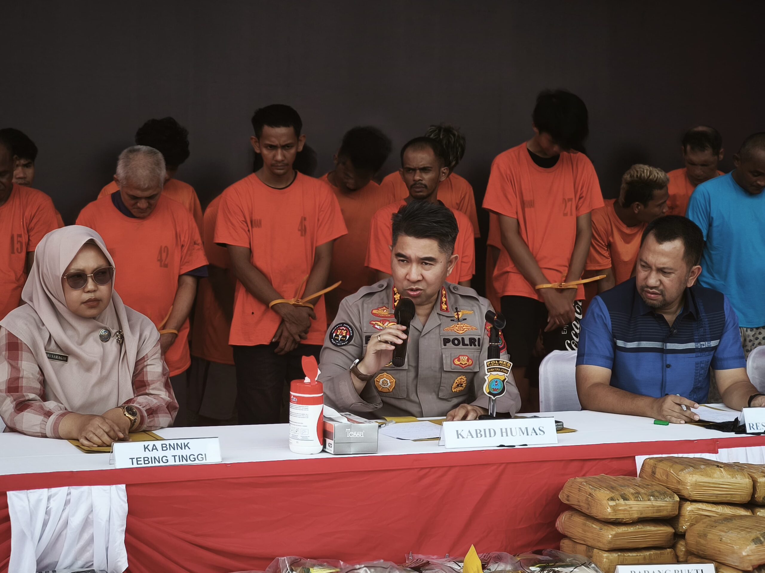 Ditambahkan Calvijn, berdasarkan hasil dari kerjasama Direktorat Reserse Narkoba Polda Sumut bersama Polres Deli Serdang, Tebing Tinggi dan Polres Serdang Bedagai, mengungkap sebanyak 862 kasus, dengan 1.010 tersangka.