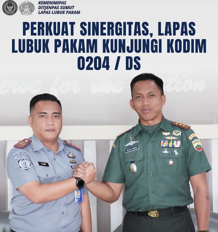 “Melalui koordinasi dan kerja sama ini diharapkan dapat meningkatkan keamanan dan ketertiban di Lapas Lubuk Pakam dan sekitarnya, semoga sinergitas diantara Lapas dan Kodim 0204/DS selalu terjalin dengan baik,” ungkap Hakim.