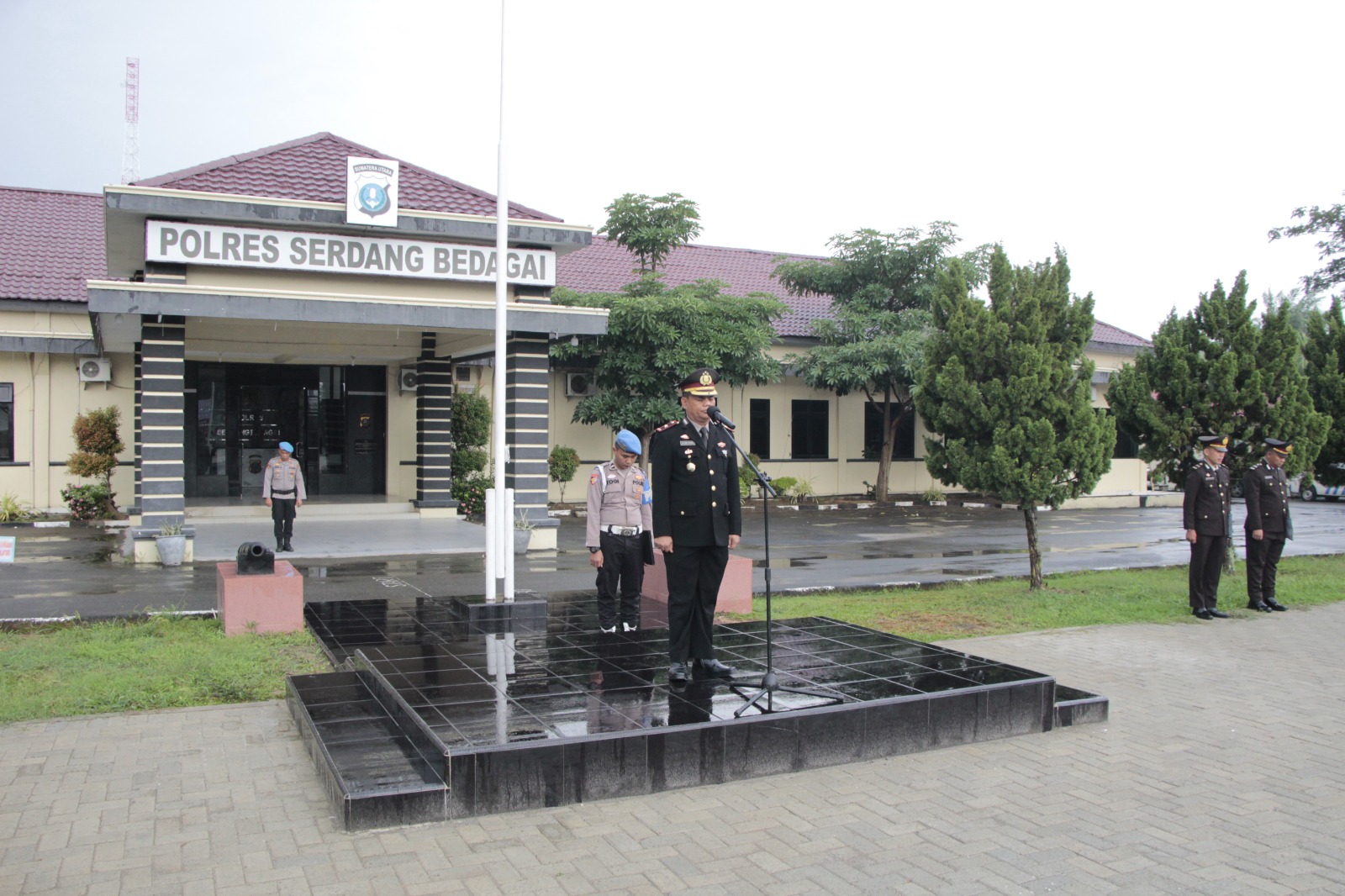 Bertindak sebagai Inspektur Upacara adalah Waka Polres Serdang Bedagai, KOMPOL MUKMIM RAMBE S.H., sementara Komandan Upacara diemban oleh IPDA OLO FERNANDES MUNTHE S.H.