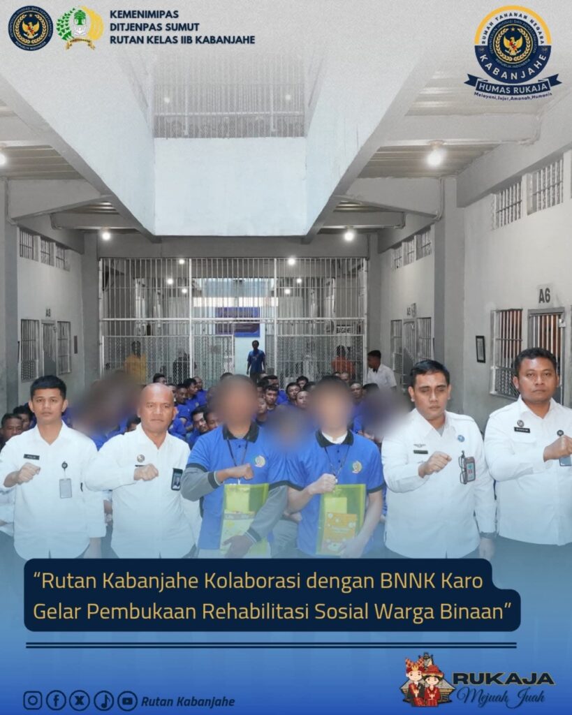 Garudaposnews.id, Kabanjahe, 13 Agustus 2025 — Rumah Tahanan Negara (Rutan) Kelas IIB Kabanjahe bersama Badan Narkotika Nasional Kabupaten (BNNK) Karo secara resmi membuka program Rehabilitasi Sosial bagi warga binaan pemasyarakatan, Rabu (13/8/2025) Pukul 10.00 WIB. Kegiatan ini merupakan bentuk sinergi antarinstansi dalam upaya penanggulangan penyalahgunaan narkotika di lingkungan lembaga pemasyarakatan.