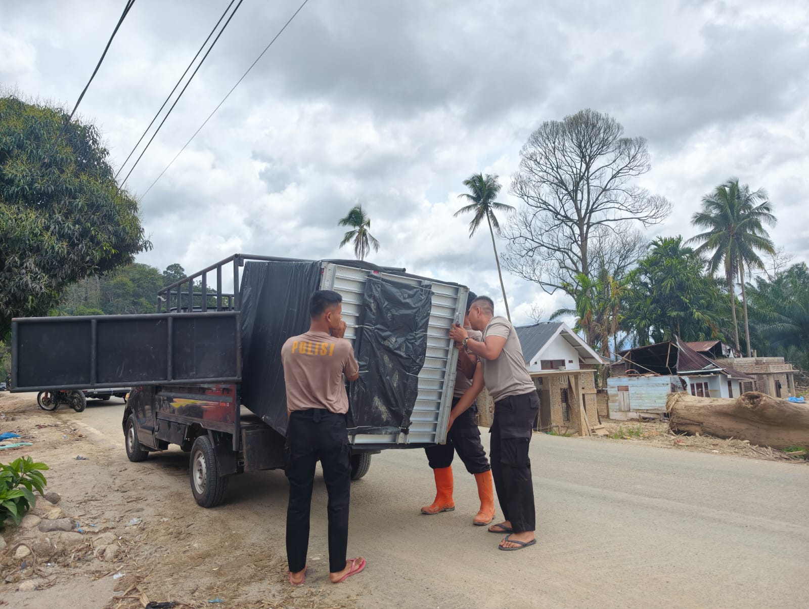 Kegiatan dipimpin oleh DANKI-1 Penugasan AKP Antanius Tarigan, S.H., M.H., dengan penuh tanggung jawab dan pengawasan langsung di lapangan. Personel melaksanakan berbagai aksi kemanusiaan, di antaranya menyalurkan bantuan WC Amfibi kepada Bapak Rahmat Bakti sebagai sarana sanitasi darurat, membantu pembangunan rumah milik Bapak Ikhsan Hasibuan yang masih dalam proses pengerjaan, serta menuntaskan pembersihan sisa pohon tumbang di belakang rumah Bapak Marancar Simatupang demi keamanan lingkungan sekitar.