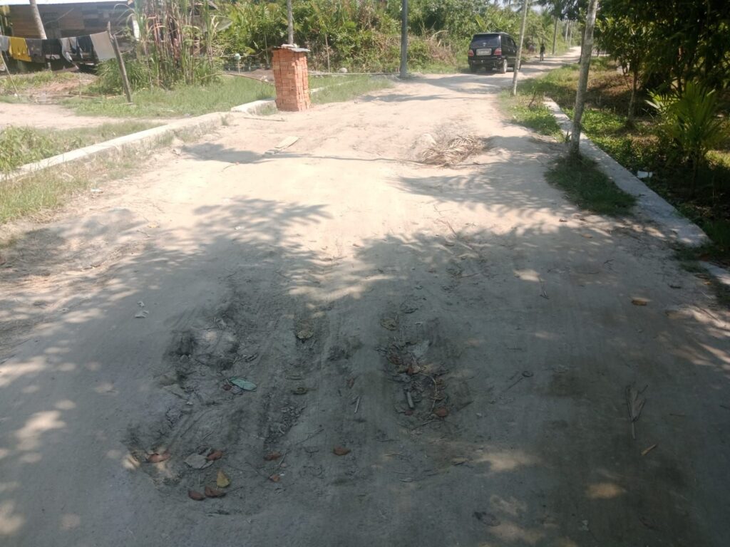 ” Saya lahir dan besar di desa ini, namun sampai sekarang sudah puluhan tahun lamanya. Jalan utama desa kami ini tidak pernah tersentuh oleh pembangunan. Selain jalanan berlobang lobang, kalau hujan turun jalanan ini  becek dan berlumpur sehingga sulit untuk dilalui baik bagi pejalan kaki atau kenderaan  roda dua “, ungkapnya